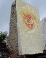 gran rosa y la imagen del crucifijo.Fuerte el contraste. Está